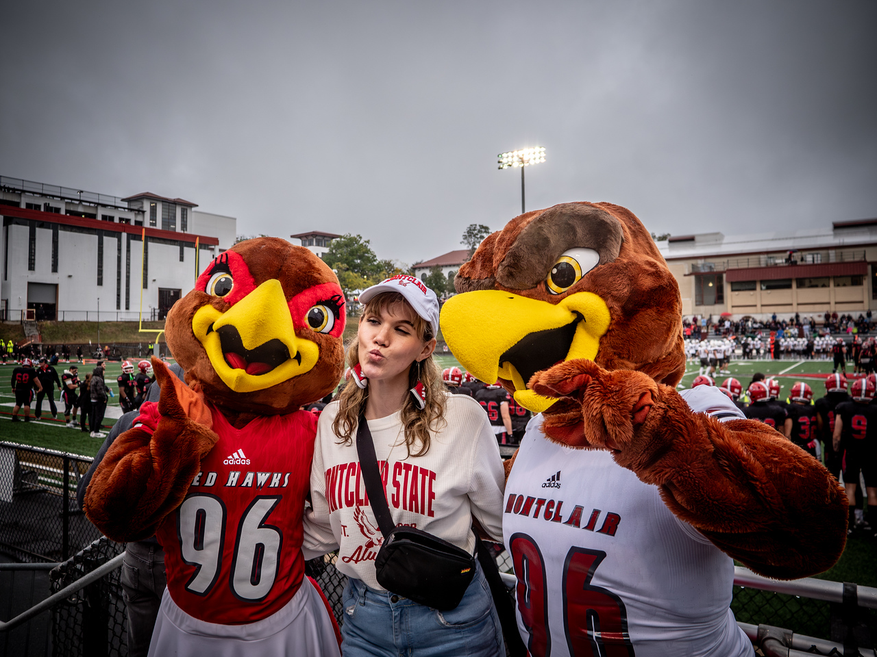 Montclair State University is home to the Red Hawks and with the help of our mascot, Rocky the Red Hawk, we bleed Red Hawk Pride! We also have our beautiful, 12-foot-high, bronze Red Hawk statue, which was installed on campus in 2015. For students, it’s the perfect place to take your first picture on campus when you get accepted and your last when you graduate. Dress the Red Hawk up at different times of the year and don’t forget to rub the beak for good luck during finals and on game days!