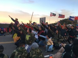 Mauna Kea is among the most sacred sites in Hawaiian religion, which is why so many Native Hawaiians and their allies are fiercely determined to protect it from the desecration of installing an eighteen-story telescope on its peak. Since the day when thirty elders were arrested in a peaceful blockade of construction activity in July, a large-scale encampment has occupied the access road to Mauna Kea’s summit, marked by daily prayers, chants, dances, and sacred ceremonies of protocol.