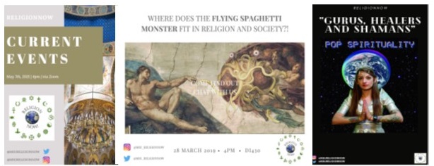 Religion Now! Is a student-led club that meets weekly to discuss topics related to religious studies and to socialize. Often a student or faculty presenter kicks off the discussion. Past topics have included religion in American politics, Scientology, the origins of Halloween and religion and ecology, among many others.
