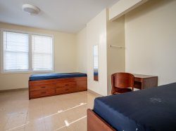 The 23 Austin Place house is our only fully renovated house and gives residents the option to live in a spacious and vibrant blue and white house here at Bloomfield College of Montclair State University. We believe that living in a house gives students a more adult-like living experience while making memories with their friends and roommates. The 23 Austin Place house comes with a full refrigerator, a mini-fridge, Smart TV in the common area, a bathroom on each floor, washer and dryer and a spacious living room and can accommodate 13-15 residents. The house is across the street from the main dining hall, Student Center and other campus staples. 23 Austin is also two blocks from Bloomfield Ave., so residents are encouraged to explore all of the nearby businesses and the local community. There is also a train line about four blocks away and a bus stop one and a half blocks away from the house for any student with public transportation needs.