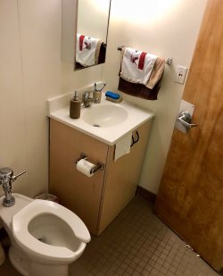 Another angle of the bathroom in a Single Room in Blanton Hall.