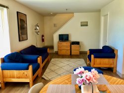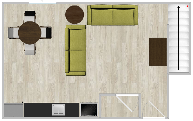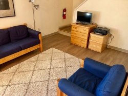 The downstairs living area in a Double Apartment in Hawk Crossings.