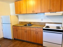 The kitchen area of a multi-floor Hawk Crossings unit.