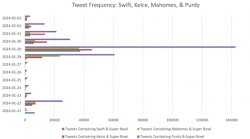 - In the period when the Chiefs and 49ers advanced to Super Bowl LVIII, Taylor Swift related #superbowl posts on “X” (formerly known as Twitter) totaled more than the COMBINED number of posts about the game’s QB’s and even her beau, Travis Kelce. Total #superbowl posts generated in the period around and immediately after the AFC and NFC championship games resulted in 52,419 mentions for Purdy, 75,258 mentions for Mahomes, 91,325 mentions for Kelce, and an astounding 272,406 mentions of Swift in connection with the big game. For #superbowl tweets mentioning any of the four studied individuals, Swift mentions accounted for 63% of the total.