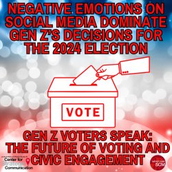 A new study released May 2, 2024 by a team of faculty from the Joetta Di Bella and Fred C. Sautter III Center for Strategic Communication in the School of Communication and Media at Montclair State University shows more than 75% of Gen Z have shared negative sentiment on social media surrounding the 2024 Presidential election, with emotions driven specifically by sadness (41%), disgust (27%), and anger (9%).