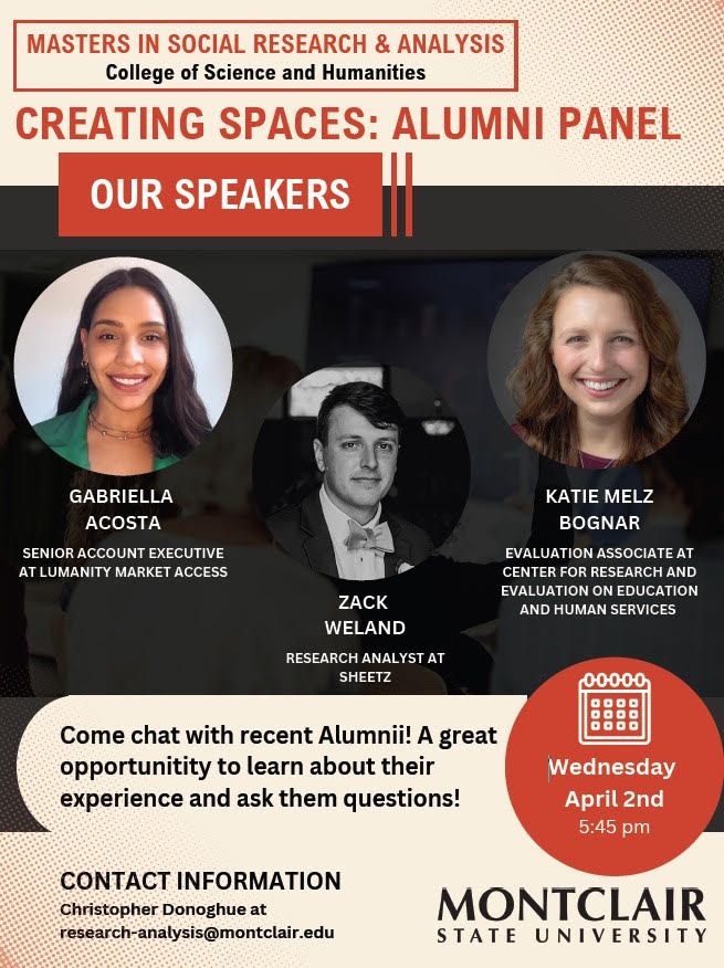 For questions about events, email us at research-analysis@montclair.edu. Please also follow our social media on LinkedIn & Instagram