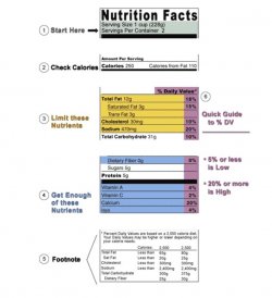 You probably already use the Nutrition Facts label in some way—maybe to check calories, fat or salt content. But the more familiar you are with the information, the more you’ll want to use it daily to ensure you’re eating a healthy, balanced diet. Use the label when you food shop, as you choose foods at the campus eateries, and as you cook each day. The label makes it easy to determine the amounts of nutrients you’re getting and to compare one product to another. Strive for a diet that emphasizes fruits, vegetables, whole grains, and fat-free or low-fat milk and milk products. Include lean meats, poultry, fish, beans, and nuts. Choose foods that are low in saturated fats, trans fats, cholesterol, salt, and added sugar.